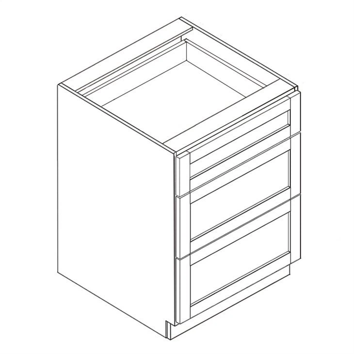Voici nos armoires à tiroirs sans cadre de style européen. C'est un excellent choix pour les armoires d'aspect classique avec une fonctionnalité moderne. Les glissières des tiroirs sont à extension complète et à fermeture en douceur. Le caisson du tiroir est construit en queue d'aronde, ce qui est très solide et durable. Avec trois tiroirs, vous pourriez avoir un grand espace de rangement pour vos ustensiles de cuisine.